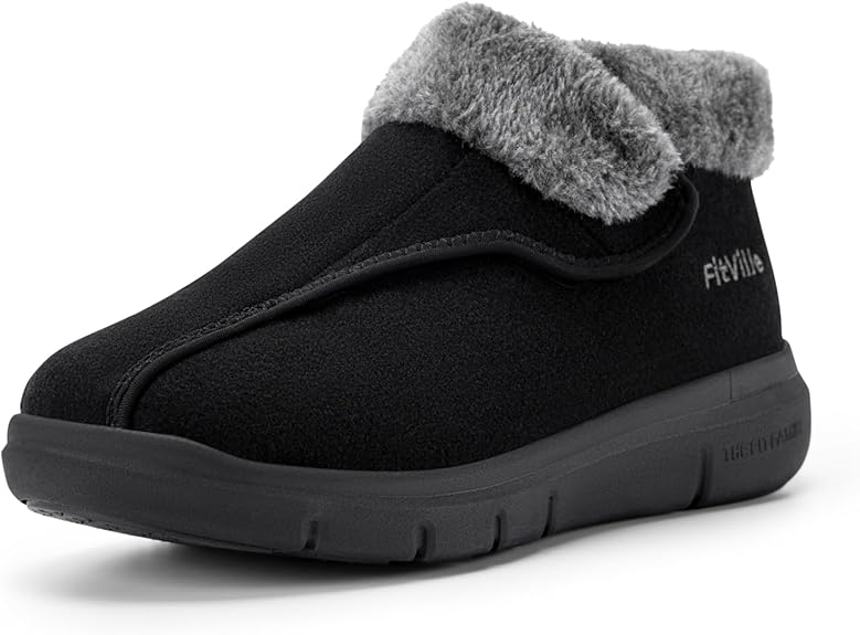 Men's Wide Snow Boots, Lightweight Winter Boots Slippers Warm Slip-on Diabetic Boots with Adjustable Closures, Comfortable