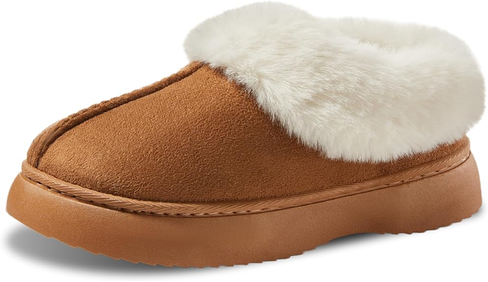 Women's Closed-back Slippers Comfy Outdoor Indoor House Shoes with Fuzzy Collar