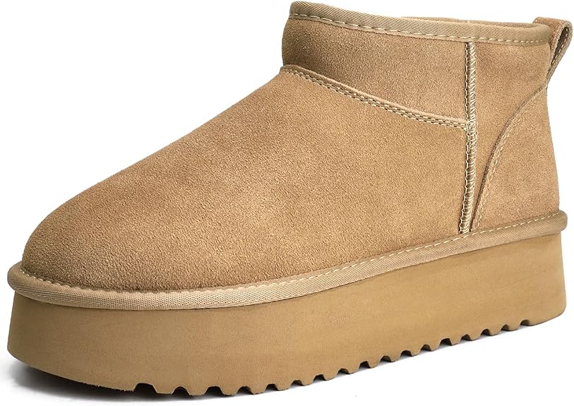 Platform Wool Lining Mini Boots for Women,Genuine Suede Snow Boots with Memory Foam,Classic Winter Women's Ankle Boots,Water