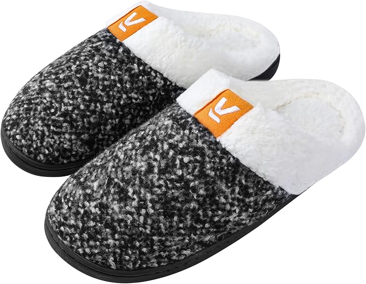 Womens Mens Slippers Memory Foam Comfort Wool-Like Plush Fleece Lined House Shoes for Indoor & Outdoor with Arch Support