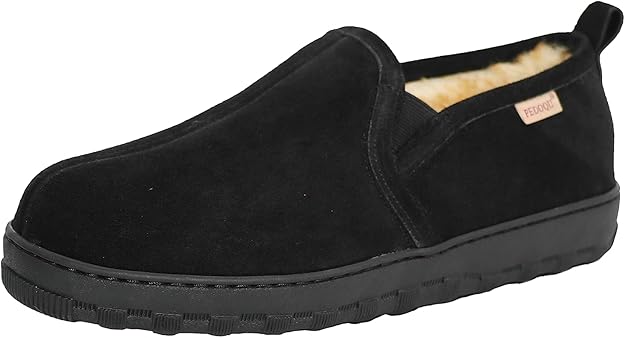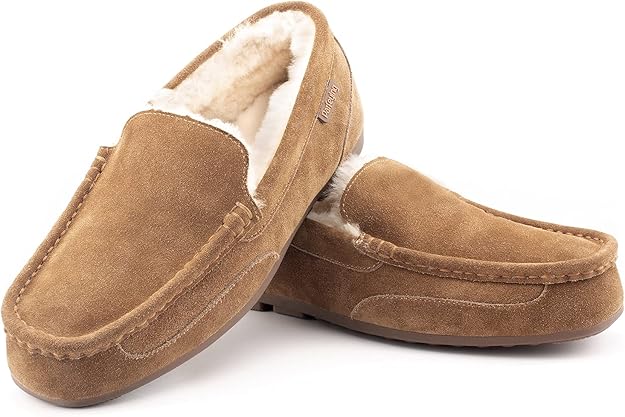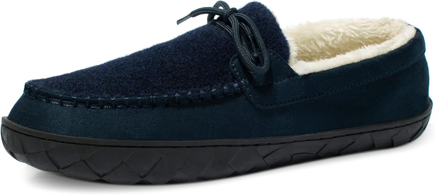 Mens Moccasin Slippers Memory Foam Suede House Slippers for Men with Soft Fleece Lining Anti-Skid Sole Indoor Outdoor House