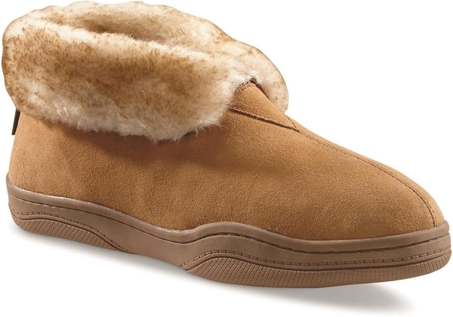Mens Bootie Slippers, Suede Soft Cushioned Bedroom House Shoes with Rubber Sole and Wool Blend Lining for Indoor Outdoor Use