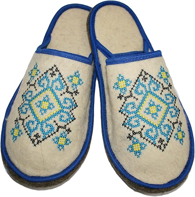 100% Natural Wool Felt Sauna Slippers Ukrainian Ornament Blue for Men - Sauna Banya Slippers Felt Bathhouse/Vaporarium - Made in