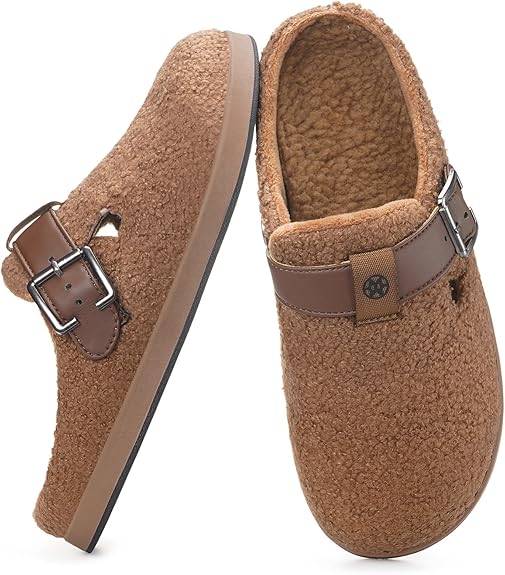Women's Men's Fuzzy Slippers Orthotic Arch Support Fleece Lined House Slippers Comfy Winter Slip On Clogs for Plantar Fasciitis