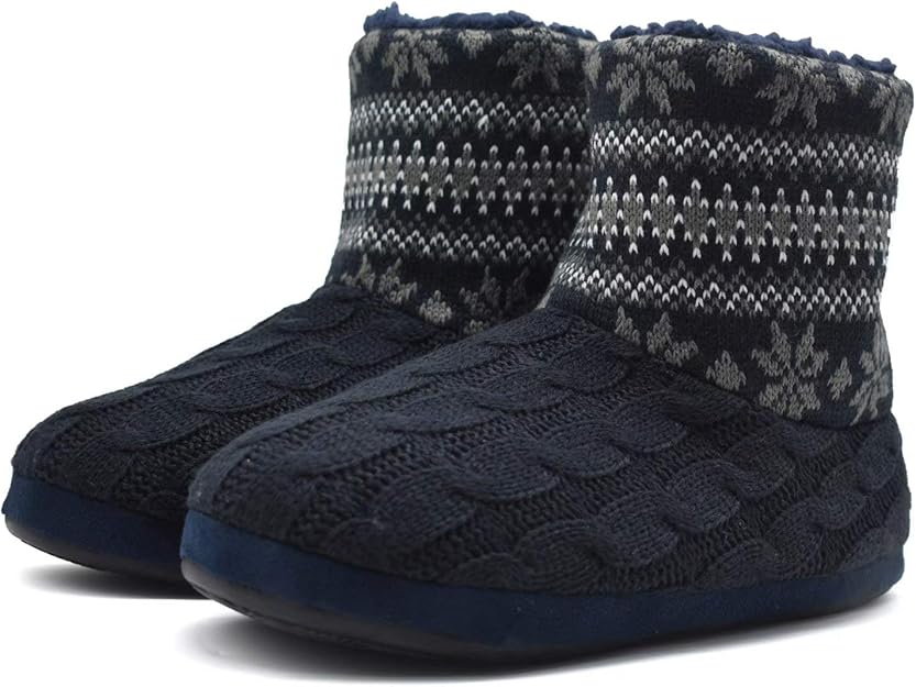 Knit Rock Wool Warm Men Indoor Pull on Cozy Memory Foam Slipper Boots Soft Rubber Sole