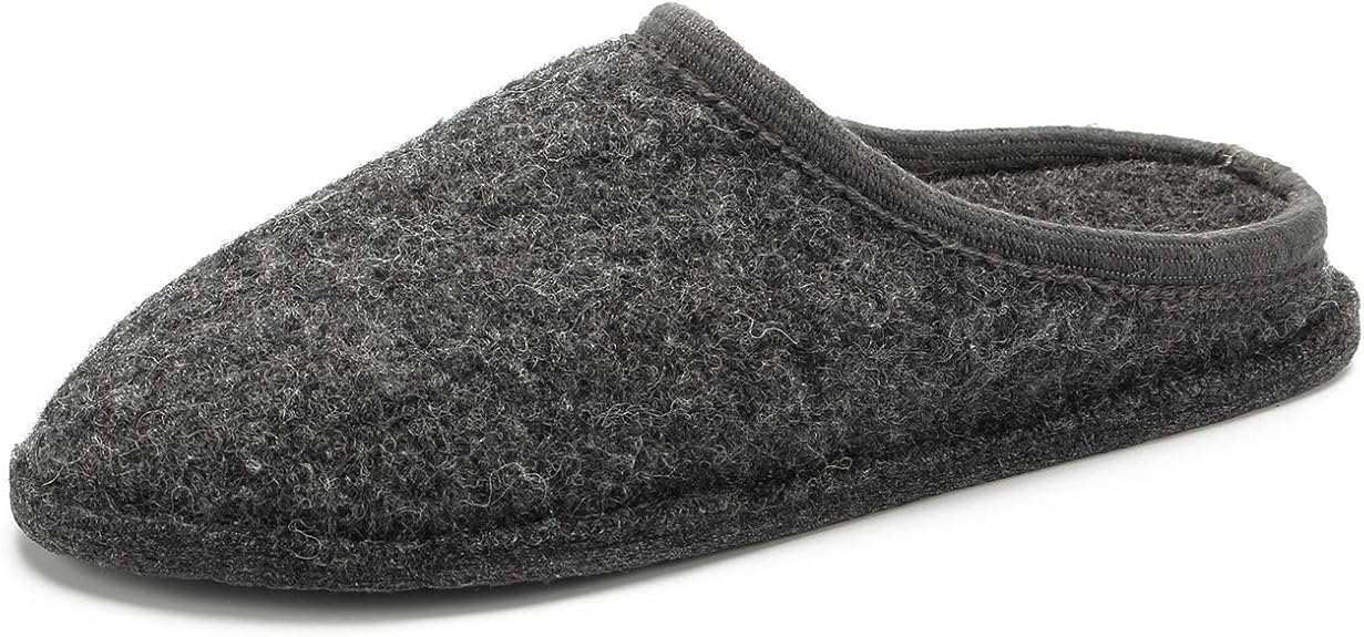 Men's Boiled Wool House Slippers Breathable Winter Warm Slip on Mules Indoor/Outdoor Slipper for Women Two Tone Cap Toe Clog
